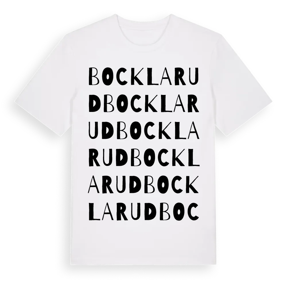 Bocklarud ordlek t-shirt är inspirerad av byn Bocklarud i Västra Götalands län, Sverige. Tröjan är designad för dig som har en speciell koppling till platsen – oavsett om du bor här, har rötterna här eller bara älskar Bocklarud.