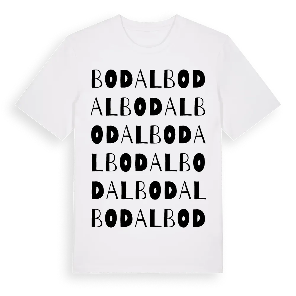 Bodal ordlek t-shirt är inspirerad av byn Bodal i Västra Götalands län, Sverige. Tröjan är designad för dig som har en speciell koppling till platsen – oavsett om du bor här, har rötterna här eller bara älskar Bodal.
