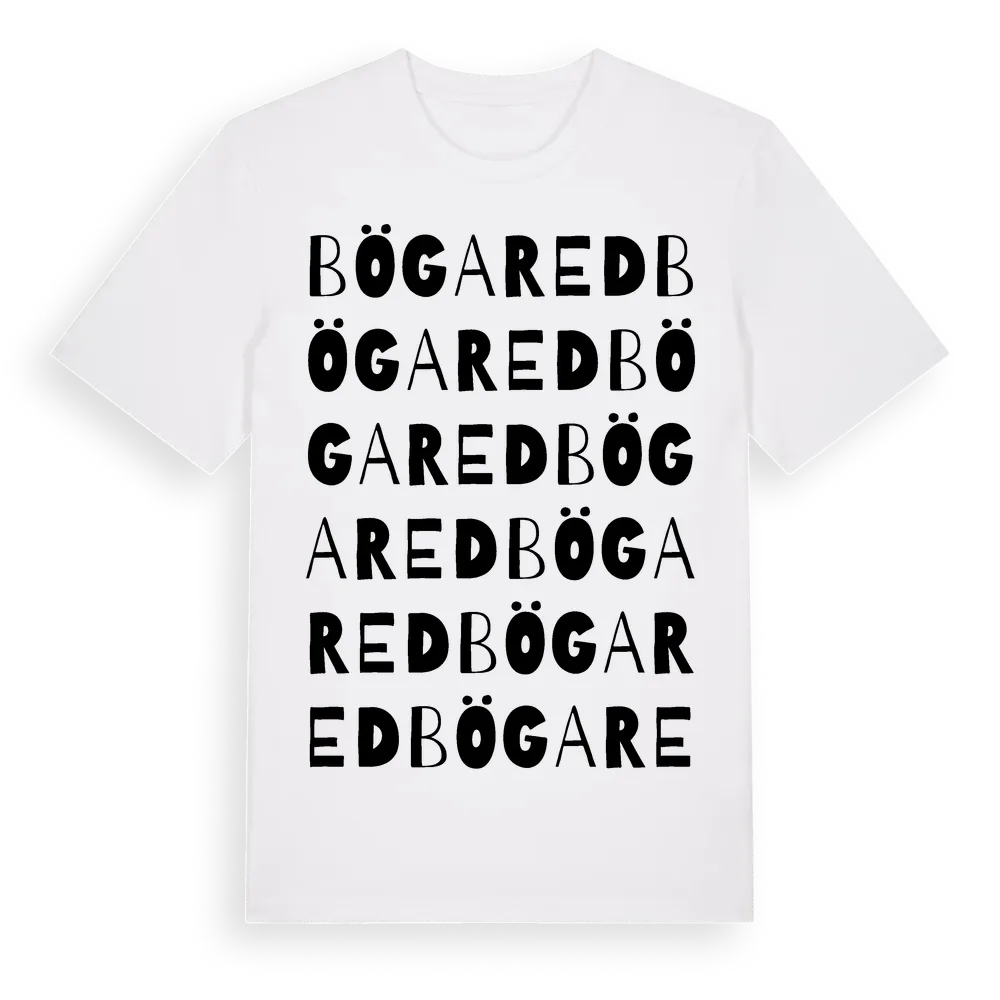 Bögared ordlek t-shirt är inspirerad av byn Bögared i Västra Götalands län, Sverige. Tröjan är designad för dig som har en speciell koppling till platsen – oavsett om du bor här, har rötterna här eller bara älskar Bögared.