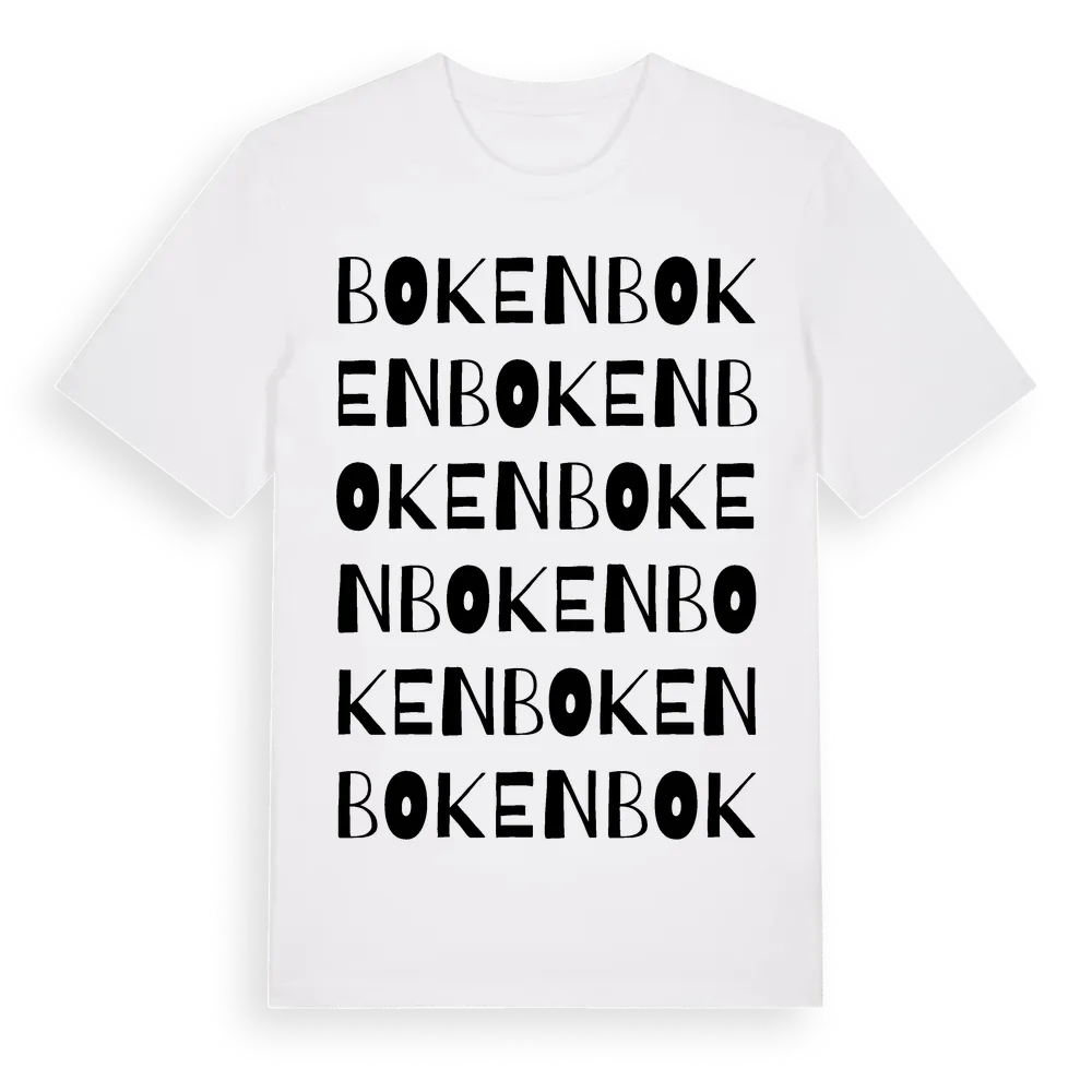 En ordlek byggd på Bokens namn. Subtilt och klurig – ett motiv som bara de som verkligen känner platsen fullt ut förstår. Premium bomull, unisex – från Boken i Västra Götalands län.