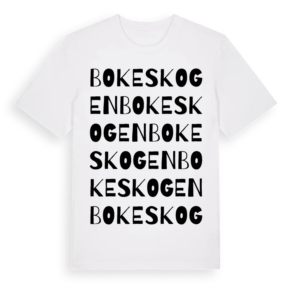 Bokeskogen ordlek t-shirt är inspirerad av Bokeskogen i Västra Götalands län, Sverige. Tröjan är designad för dig som har en speciell koppling till platsen – oavsett om du bor här, har rötterna här eller bara älskar Bokeskogen.