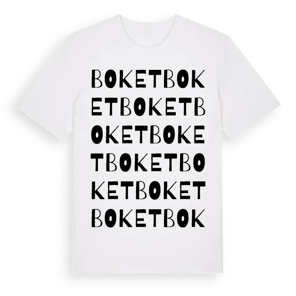Boket ordlek t-shirt är inspirerad av Boket i Västra Götalands län, Sverige. Tröjan är designad för dig som har en speciell koppling till platsen – oavsett om du bor här, har rötterna här eller bara älskar Boket.