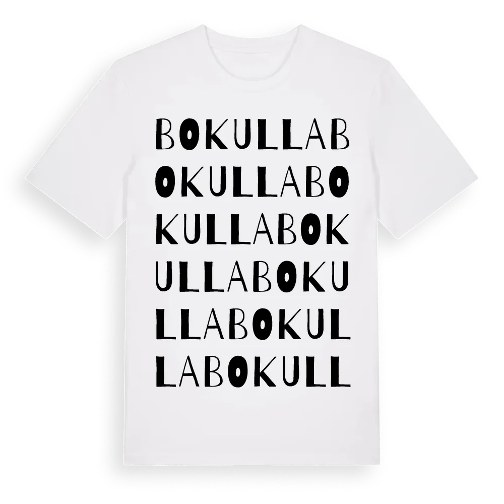 Bokulla ordlek t-shirt är inspirerad av byn Bokulla i Västra Götalands län, Sverige. Tröjan är designad för dig som har en speciell koppling till platsen – oavsett om du bor här, har rötterna här eller bara älskar Bokulla.