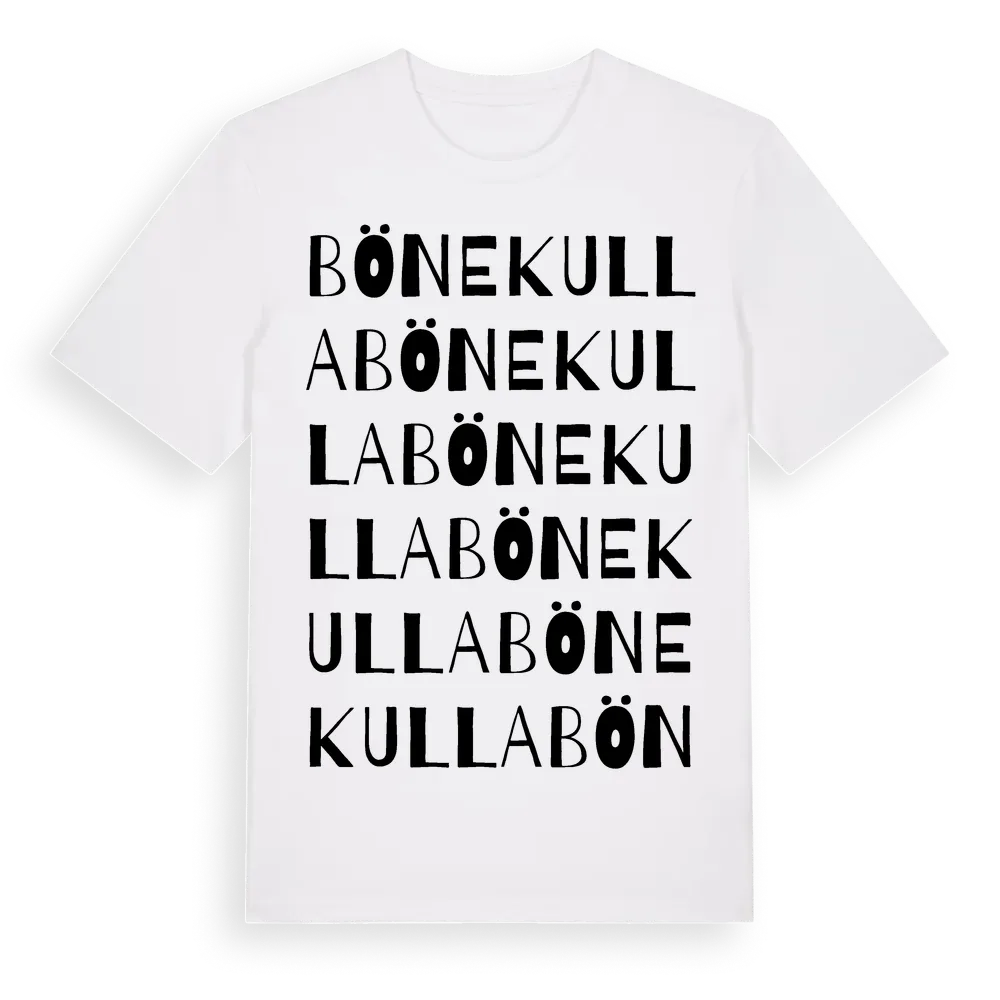 Bönekulla ordlek t-shirt är inspirerad av Bönekulla i Västra Götalands län, Sverige. Tröjan är designad för dig som har en speciell koppling till platsen – oavsett om du bor här, har rötterna här eller bara älskar Bönekulla.