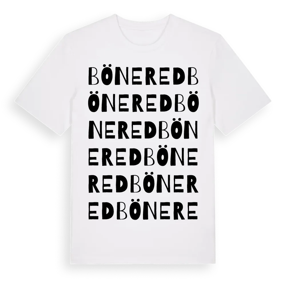 En ordlek byggd på Bönereds namn. Subtilt och klurig – ett motiv som bara de som verkligen känner platsen fullt ut förstår. Premium bomull, unisex – från byn Bönered i Västra Götalands län.