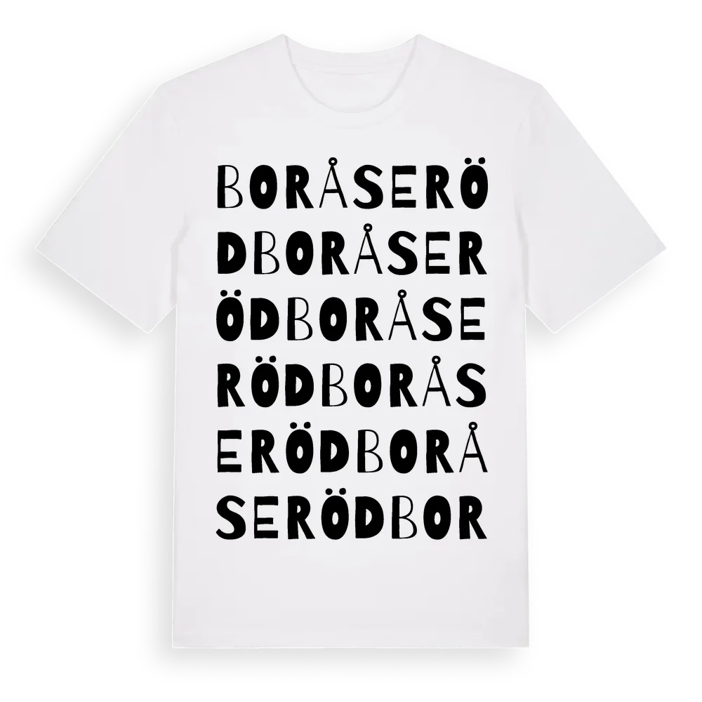 Boråseröd ordlek t-shirt är inspirerad av byn Boråseröd i Västra Götalands län, Sverige. Tröjan är designad för dig som har en speciell koppling till platsen – oavsett om du bor här, har rötterna här eller bara älskar Boråseröd.