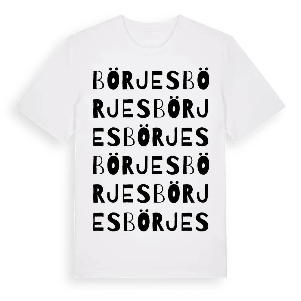 Börjes ordlek t-shirt är inspirerad av Börjes i Västra Götalands län, Sverige. Tröjan är designad för dig som har en speciell koppling till platsen – oavsett om du bor här, har rötterna här eller bara älskar Börjes.