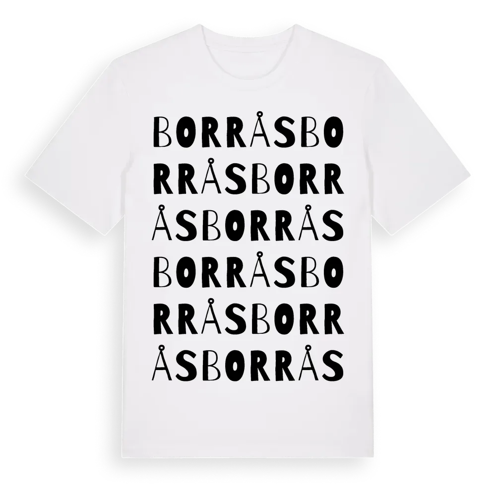 Borrås ordlek t-shirt är inspirerad av Borrås i Västra Götalands län, Sverige. Tröjan är designad för dig som har en speciell koppling till platsen – oavsett om du bor här, har rötterna här eller bara älskar Borrås.