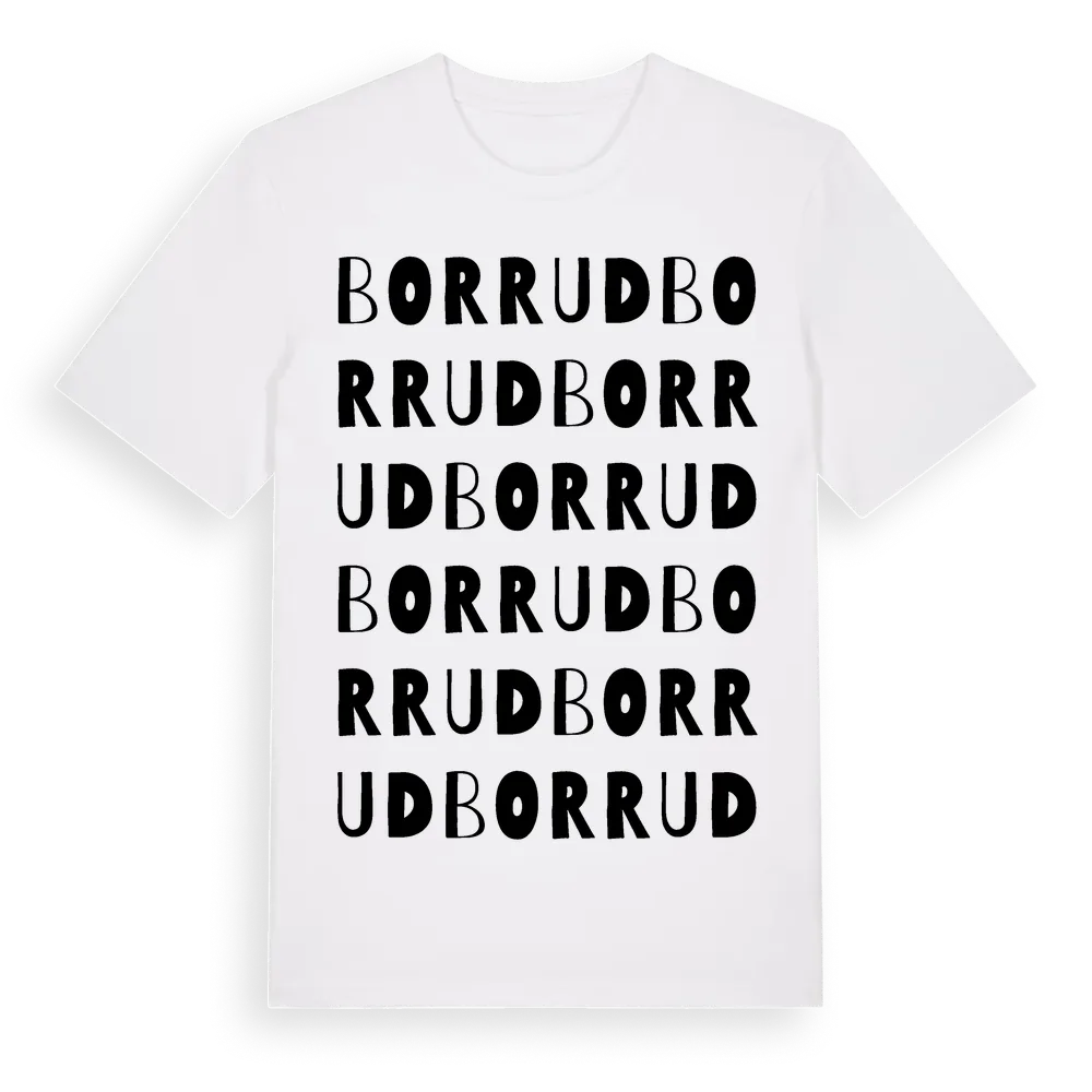 Borrud ordlek t-shirt är inspirerad av Borrud i Västra Götalands län, Sverige. Tröjan är designad för dig som har en speciell koppling till platsen – oavsett om du bor här, har rötterna här eller bara älskar Borrud.