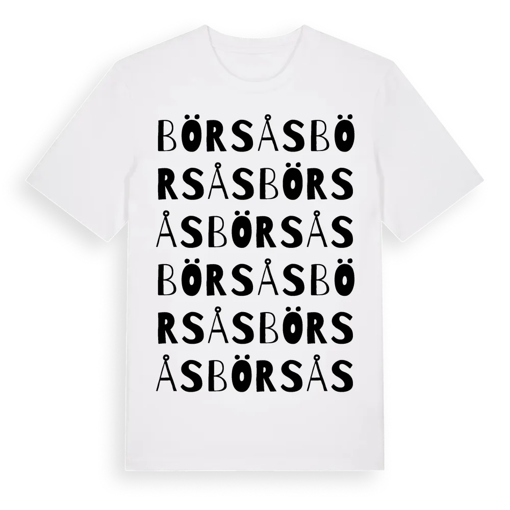 Börsås ordlek t-shirt är inspirerad av Börsås i Västra Götalands län, Sverige. Tröjan är designad för dig som har en speciell koppling till platsen – oavsett om du bor här, har rötterna här eller bara älskar Börsås.