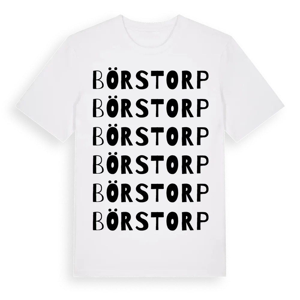 Börstorp ordlek t-shirt är inspirerad av stadsdelen Börstorp i Västra Götalands län, Sverige. Tröjan är designad för dig som har en speciell koppling till platsen – oavsett om du bor här, har rötterna här eller bara älskar Börstorp.