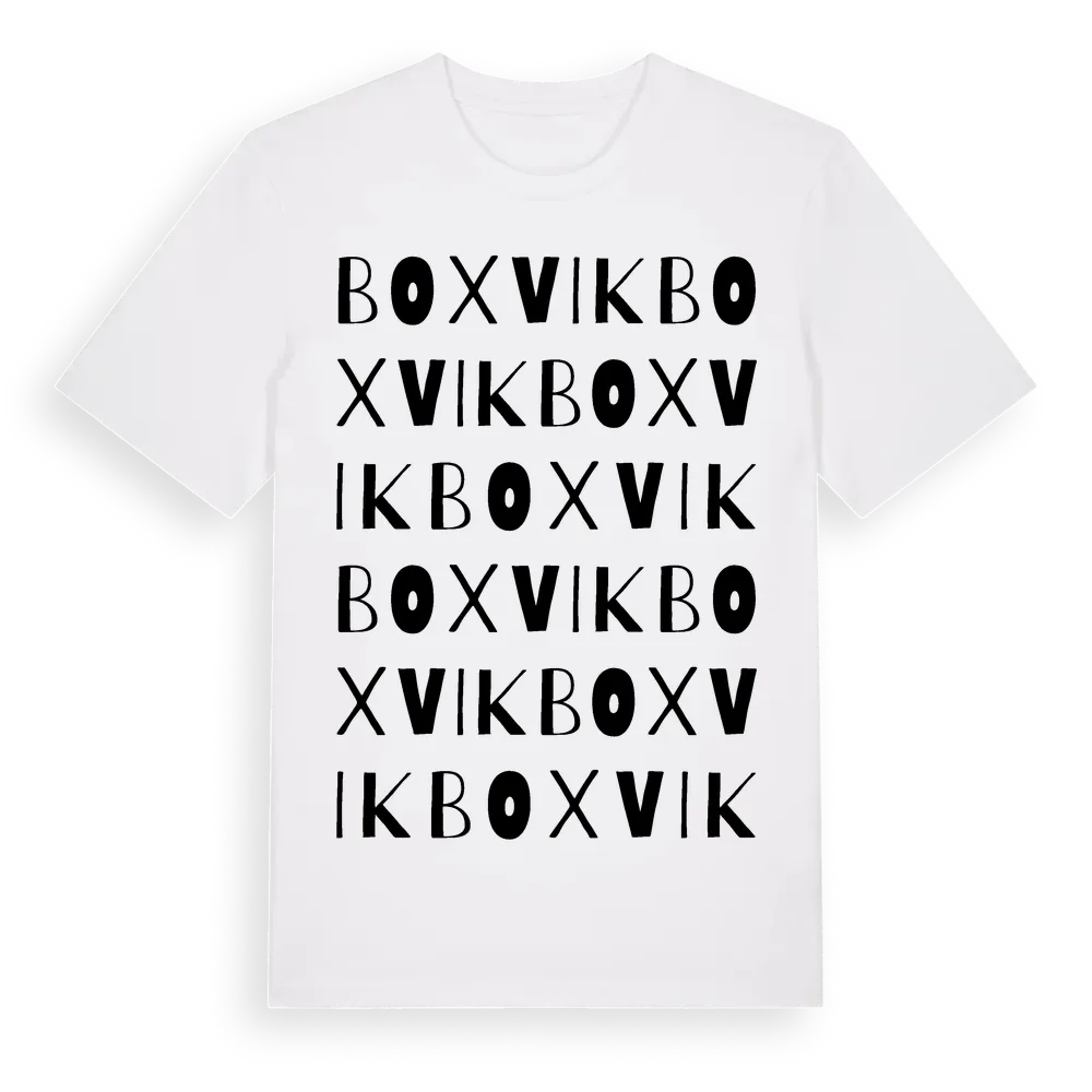 Boxvik ordlek t-shirt är inspirerad av byn Boxvik i Västra Götalands län, Sverige. Tröjan är designad för dig som har en speciell koppling till platsen – oavsett om du bor här, har rötterna här eller bara älskar Boxvik.
