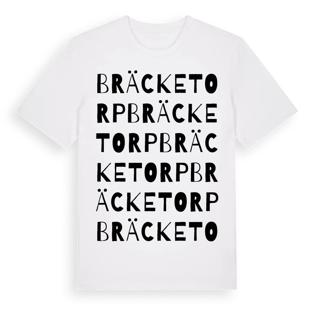 Bräcketorp ordlek t-shirt är inspirerad av byn Bräcketorp i Västra Götalands län, Sverige. Tröjan är designad för dig som har en speciell koppling till platsen – oavsett om du bor här, har rötterna här eller bara älskar Bräcketorp.