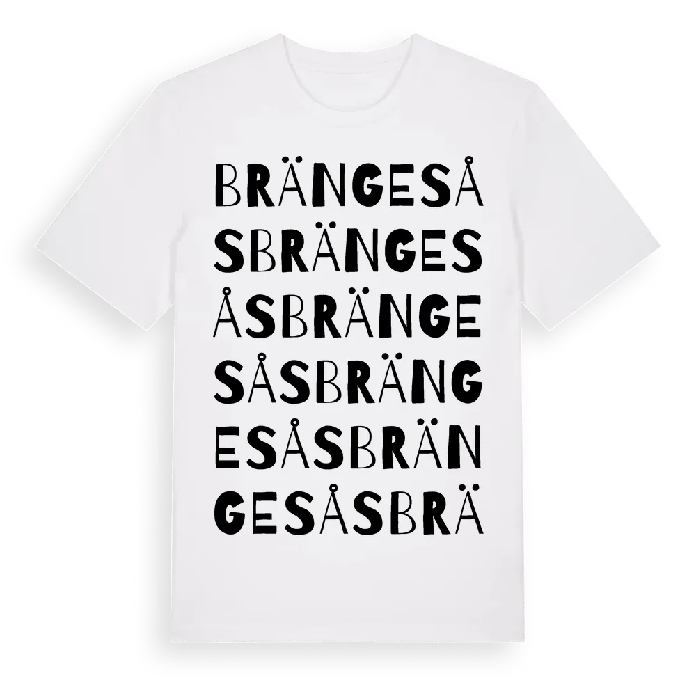 Brängesås ordlek t-shirt är inspirerad av Brängesås i Västra Götalands län, Sverige. Tröjan är designad för dig som har en speciell koppling till platsen – oavsett om du bor här, har rötterna här eller bara älskar Brängesås.