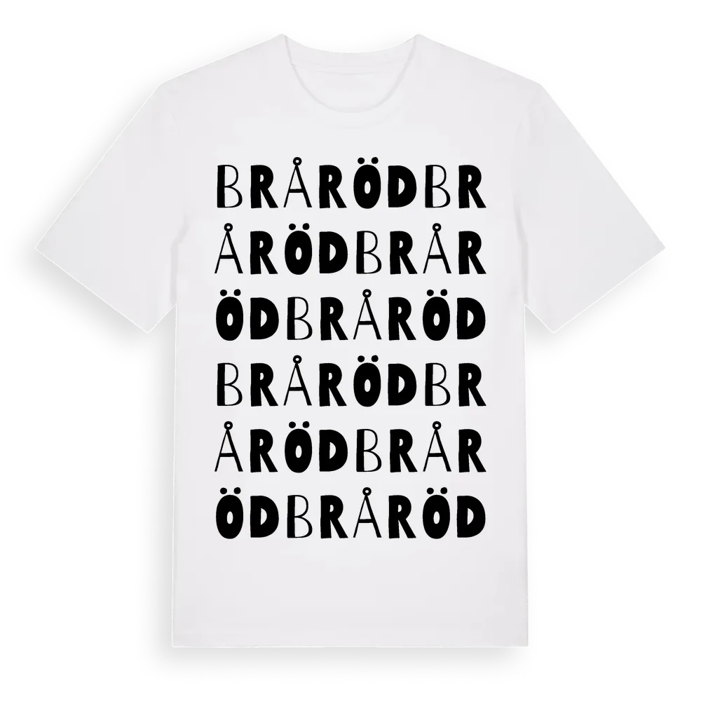 Bråröd ordlek t-shirt är inspirerad av Bråröd i Västra Götalands län, Sverige. Tröjan är designad för dig som har en speciell koppling till platsen – oavsett om du bor här, har rötterna här eller bara älskar Bråröd.