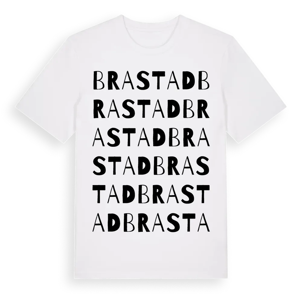 Brastad ordlek t-shirt är inspirerad av byn Brastad i Västra Götalands län, Sverige. Tröjan är designad för dig som har en speciell koppling till platsen – oavsett om du bor här, har rötterna här eller bara älskar Brastad.