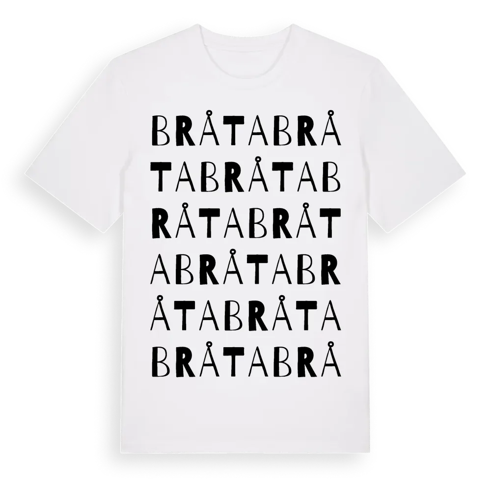 Bråta ordlek t-shirt är inspirerad av Bråta i Västra Götalands län, Sverige. Tröjan är designad för dig som har en speciell koppling till platsen – oavsett om du bor här, har rötterna här eller bara älskar Bråta.