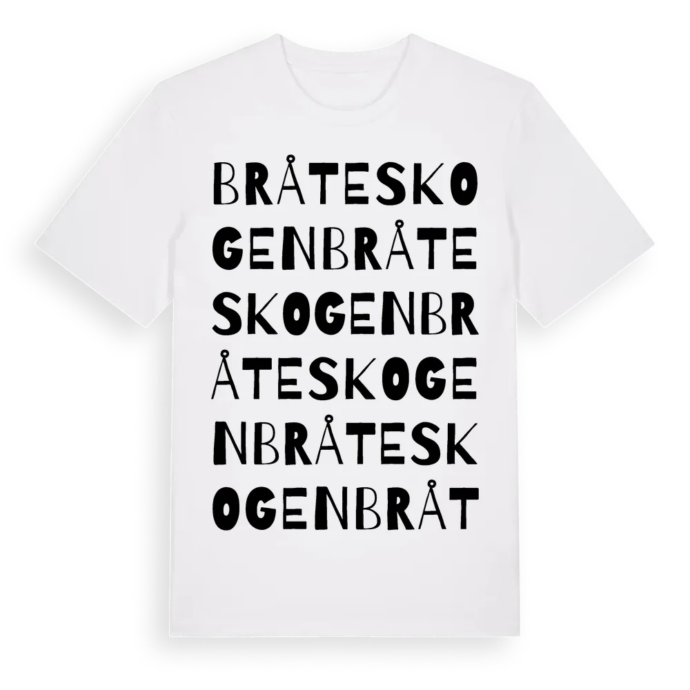 Bråteskogen ordlek t-shirt är inspirerad av Bråteskogen i Västra Götalands län, Sverige. Tröjan är designad för dig som har en speciell koppling till platsen – oavsett om du bor här, har rötterna här eller bara älskar Bråteskogen.