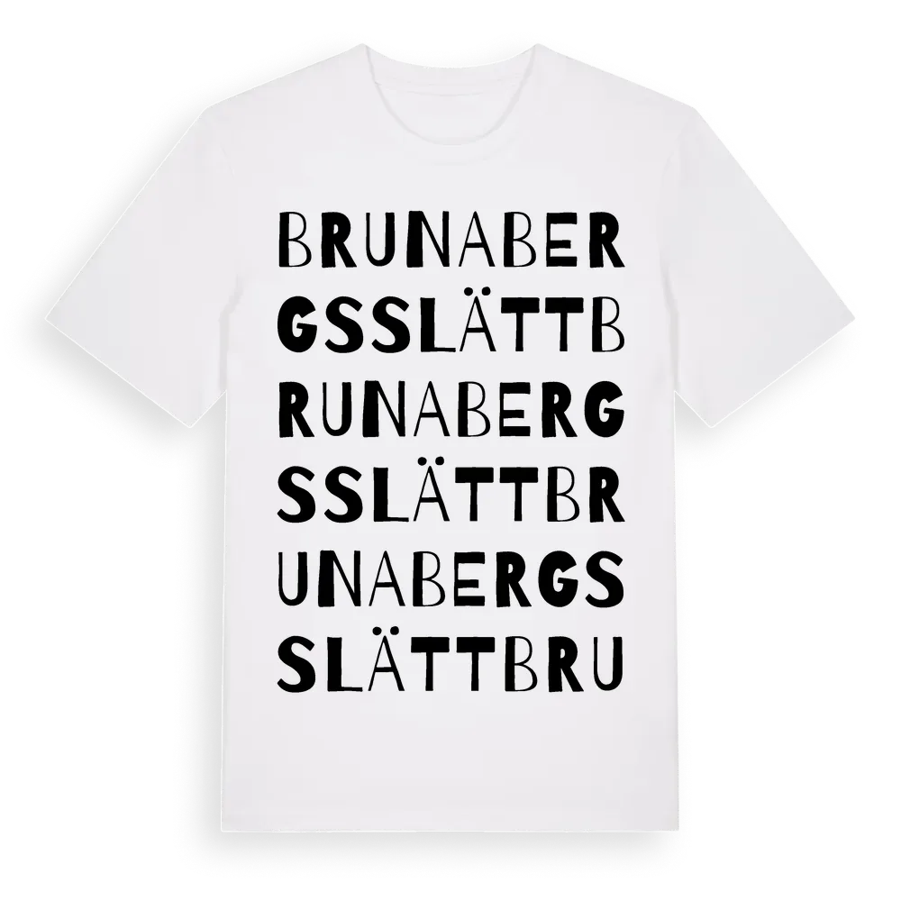 Brunabergsslätt ordlek t-shirt är inspirerad av Brunabergsslätt i Västra Götalands län, Sverige. Tröjan är designad för dig som har en speciell koppling till platsen – oavsett om du bor här, har rötterna här eller bara älskar Brunabergsslätt.