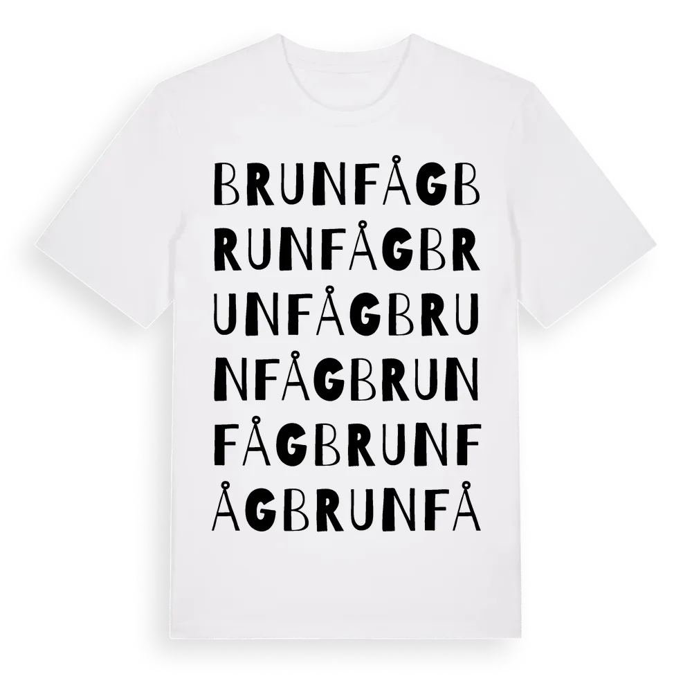 Brunfåg ordlek t-shirt är inspirerad av Brunfåg i Västra Götalands län, Sverige. Tröjan är designad för dig som har en speciell koppling till platsen – oavsett om du bor här, har rötterna här eller bara älskar Brunfåg.