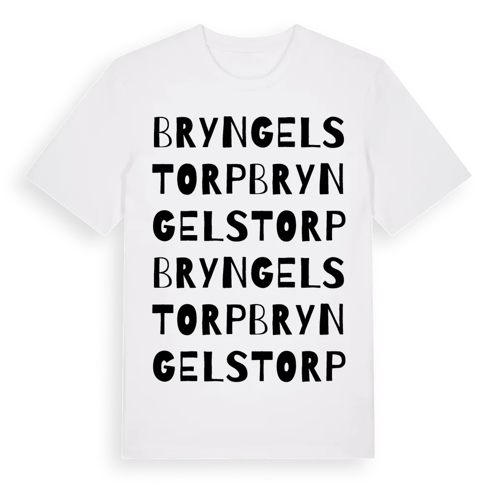 Bryngelstorp ordlek t-shirt är inspirerad av Bryngelstorp i Västra Götalands län, Sverige. Tröjan är designad för dig som har en speciell koppling till platsen – oavsett om du bor här, har rötterna här eller bara älskar Bryngelstorp.