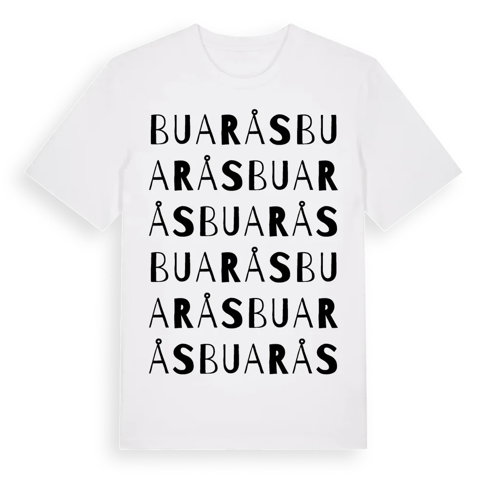 Buarås ordlek t-shirt är inspirerad av byn Buarås i Västra Götalands län, Sverige. Tröjan är designad för dig som har en speciell koppling till platsen – oavsett om du bor här, har rötterna här eller bara älskar Buarås.