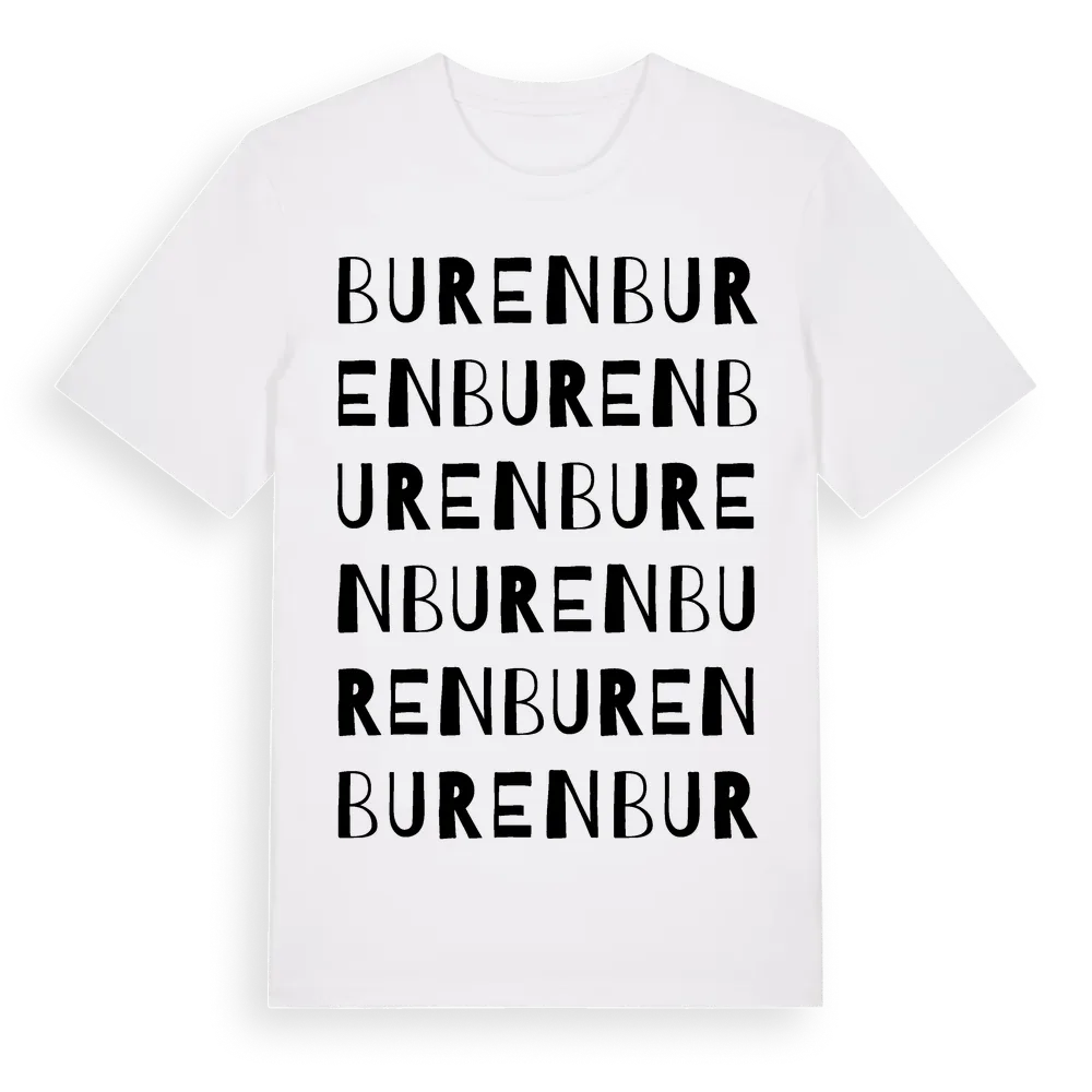En ordlek byggd på Burens namn. Subtilt och klurig – ett motiv som bara de som verkligen känner platsen fullt ut förstår. Premium bomull, unisex – från Buren i Västra Götalands län.