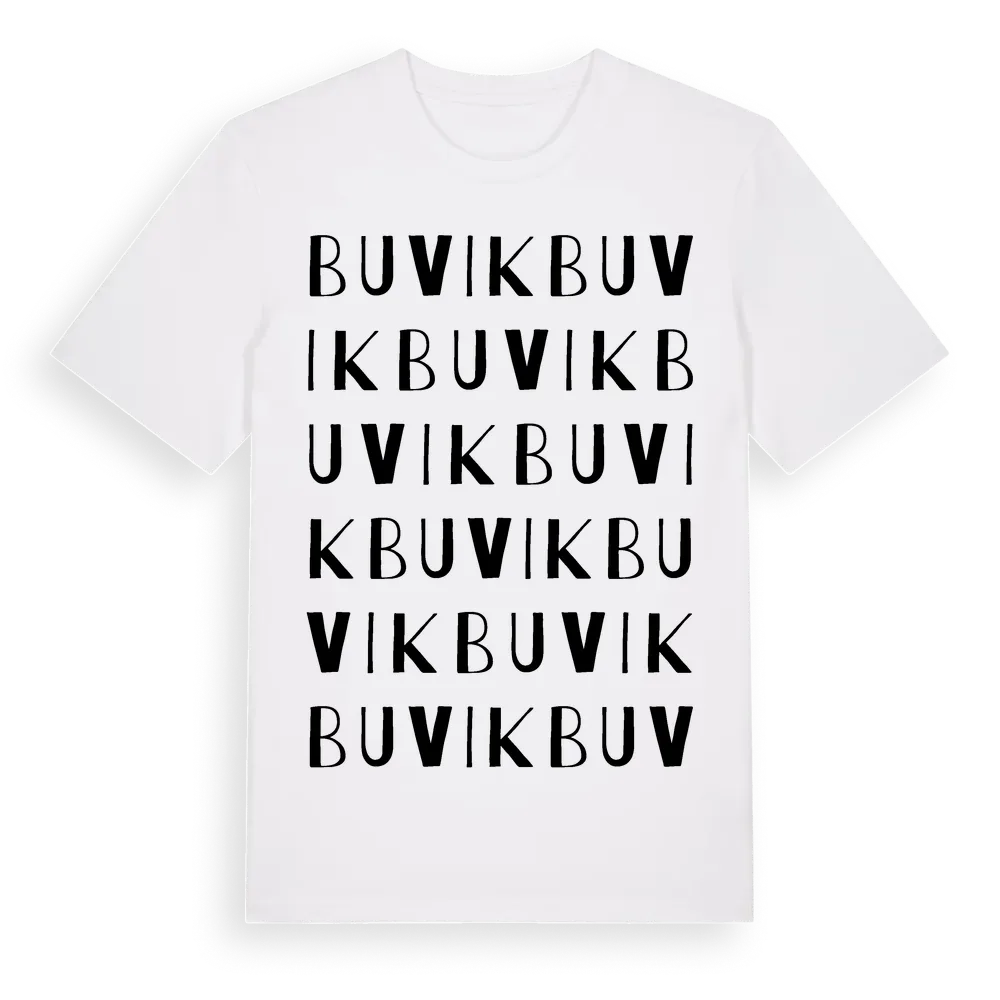 Buvik ordlek t-shirt är inspirerad av Buvik i Västra Götalands län, Sverige. Tröjan är designad för dig som har en speciell koppling till platsen – oavsett om du bor här, har rötterna här eller bara älskar Buvik.