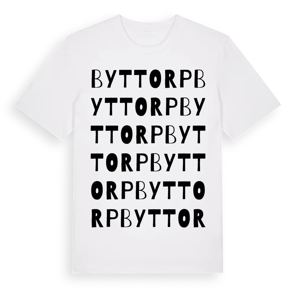 Byttorp ordlek t-shirt är inspirerad av stadsdelen Byttorp i Västra Götalands län, Sverige. Tröjan är designad för dig som har en speciell koppling till platsen – oavsett om du bor här, har rötterna här eller bara älskar Byttorp.