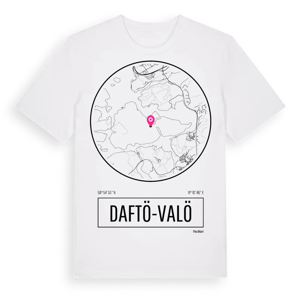 Daftö-Valö t-shirt är inspirerad av ön Daftö-Valö i Västra Götalands län, Sverige. Tröjan är designad för dig som har en speciell koppling till platsen – oavsett om du bor här, har rötterna här eller bara älskar Daftö-Valö.