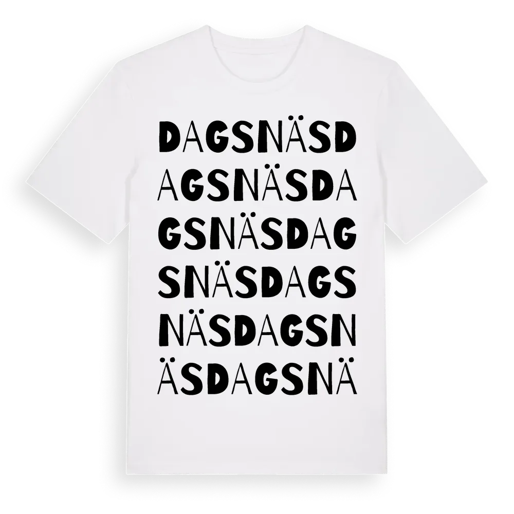 En ordlek byggd på Dagsnäss namn. Subtilt och klurig – ett motiv som bara de som verkligen känner platsen fullt ut förstår. Premium bomull, unisex – från Dagsnäs i Västra Götalands län.