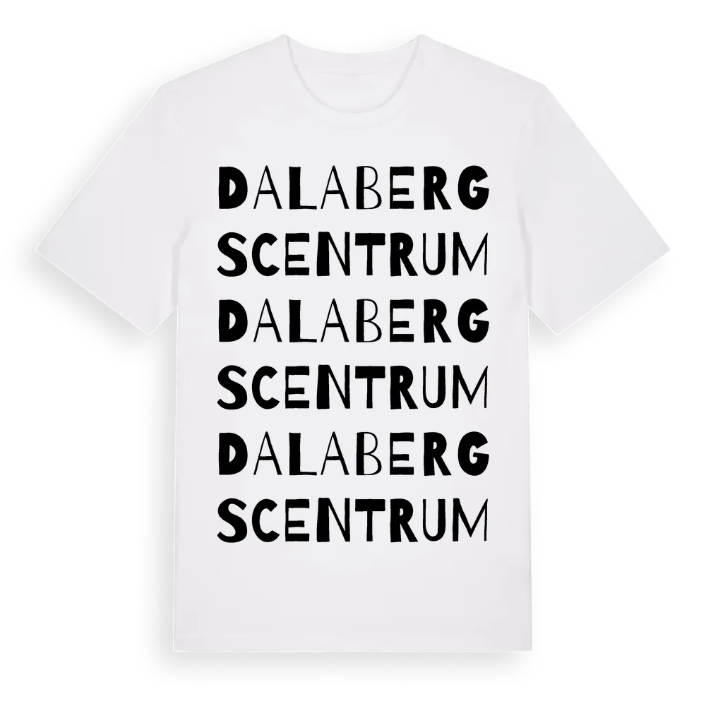 En ordlek byggd på Dalabergs Centrums namn. Subtilt och klurig – ett motiv som bara de som verkligen känner platsen fullt ut förstår. Premium bomull, unisex – från Dalabergs Centrum i Västra Götalands län.