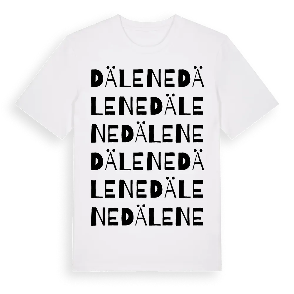 Dälene ordlek t-shirt är inspirerad av byn Dälene i Västra Götalands län, Sverige. Tröjan är designad för dig som har en speciell koppling till platsen – oavsett om du bor här, har rötterna här eller bara älskar Dälene.