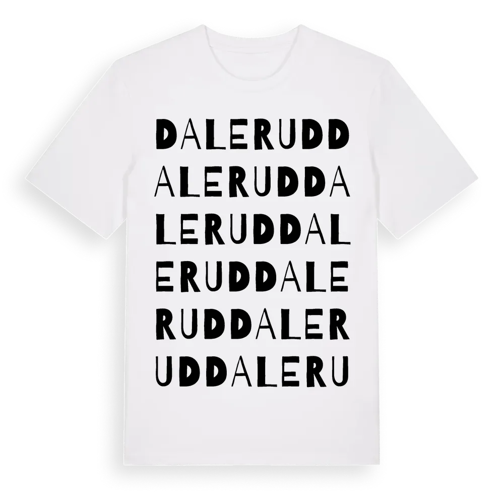 Dalerud ordlek t-shirt är inspirerad av Dalerud i Västra Götalands län, Sverige. Tröjan är designad för dig som har en speciell koppling till platsen – oavsett om du bor här, har rötterna här eller bara älskar Dalerud.