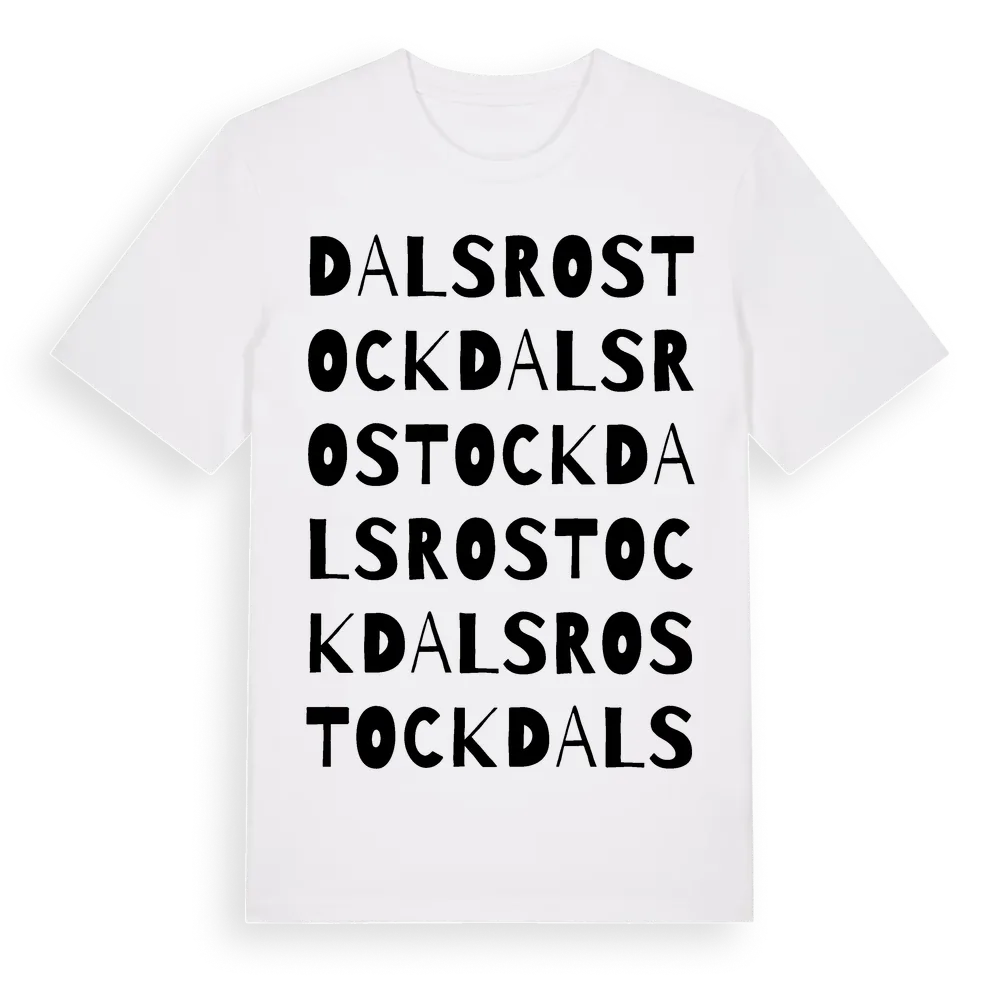 Dals Rostock ordlek t-shirt är inspirerad av byn Dals Rostock i Västra Götalands län, Sverige. Tröjan är designad för dig som har en speciell koppling till platsen – oavsett om du bor här, har rötterna här eller bara älskar Dals Rostock.