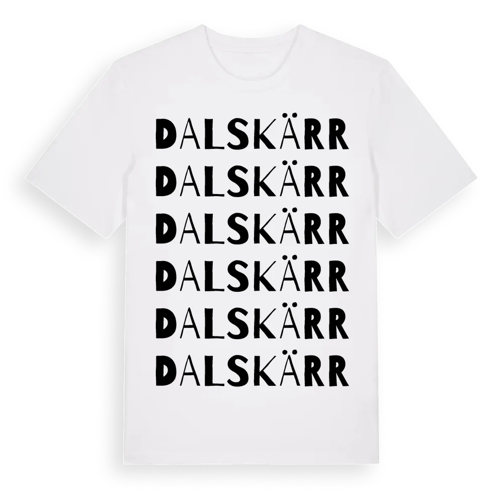 Dalskärr ordlek t-shirt är inspirerad av Dalskärr i Västra Götalands län, Sverige. Tröjan är designad för dig som har en speciell koppling till platsen – oavsett om du bor här, har rötterna här eller bara älskar Dalskärr.