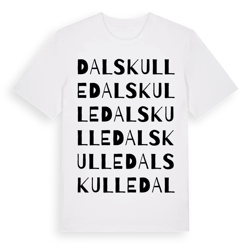 Dalskulle ordlek t-shirt är inspirerad av Dalskulle i Västra Götalands län, Sverige. Tröjan är designad för dig som har en speciell koppling till platsen – oavsett om du bor här, har rötterna här eller bara älskar Dalskulle.