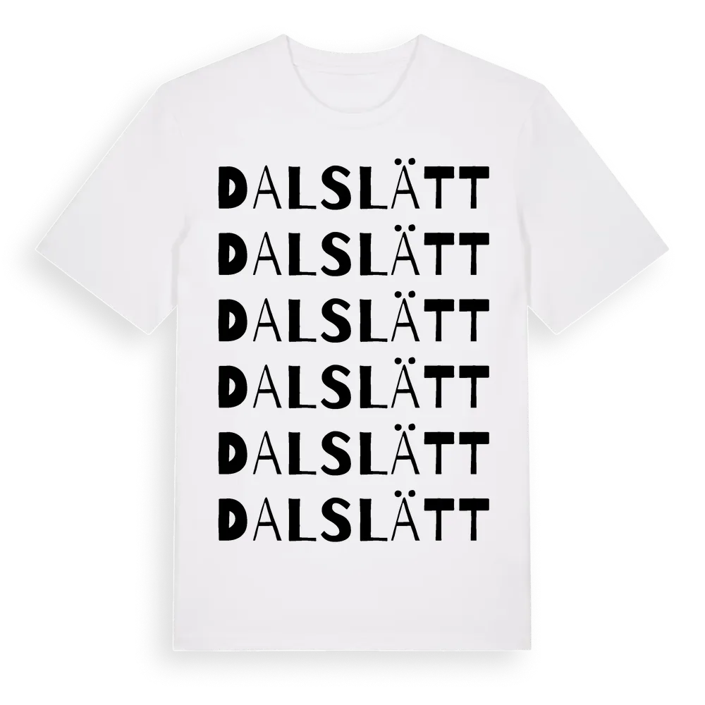 Dalslätt ordlek t-shirt är inspirerad av Dalslätt i Västra Götalands län, Sverige. Tröjan är designad för dig som har en speciell koppling till platsen – oavsett om du bor här, har rötterna här eller bara älskar Dalslätt.