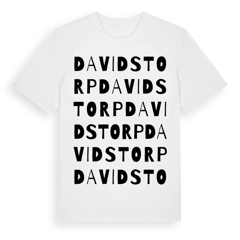 Davidstorp ordlek t-shirt är inspirerad av Davidstorp i Västra Götalands län, Sverige. Tröjan är designad för dig som har en speciell koppling till platsen – oavsett om du bor här, har rötterna här eller bara älskar Davidstorp.