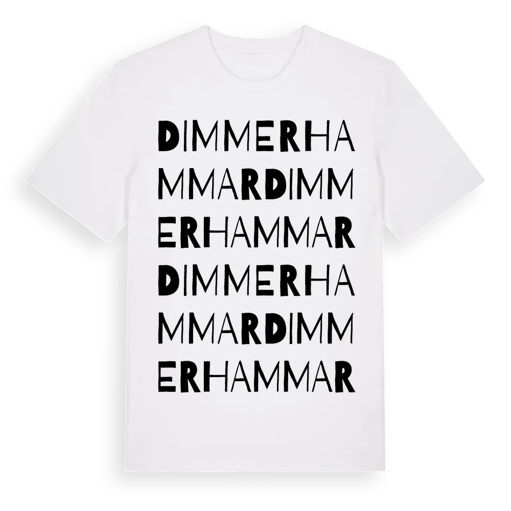 En ordlek byggd på Dimmerhammars namn. Subtilt och klurig – ett motiv som bara de som verkligen känner platsen fullt ut förstår. Premium bomull, unisex – från Dimmerhammar i Västra Götalands län.