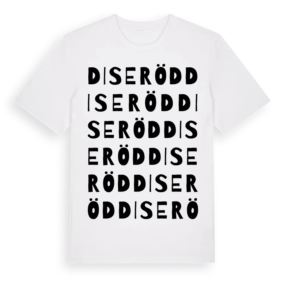 Diseröd ordlek t-shirt är inspirerad av byn Diseröd i Västra Götalands län, Sverige. Tröjan är designad för dig som har en speciell koppling till platsen – oavsett om du bor här, har rötterna här eller bara älskar Diseröd.