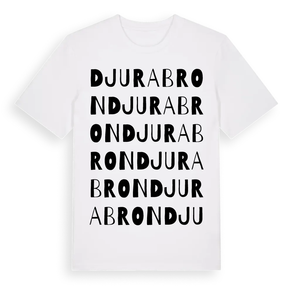 Djurabron ordlek t-shirt är inspirerad av Djurabron i Västra Götalands län, Sverige. Tröjan är designad för dig som har en speciell koppling till platsen – oavsett om du bor här, har rötterna här eller bara älskar Djurabron.