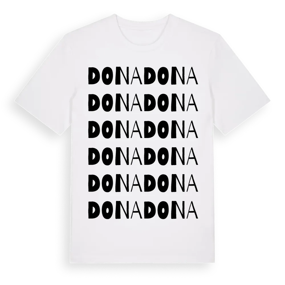 Dona ordlek t-shirt är inspirerad av stadsdelen Dona i Västra Götalands län, Sverige. Tröjan är designad för dig som har en speciell koppling till platsen – oavsett om du bor här, har rötterna här eller bara älskar Dona.