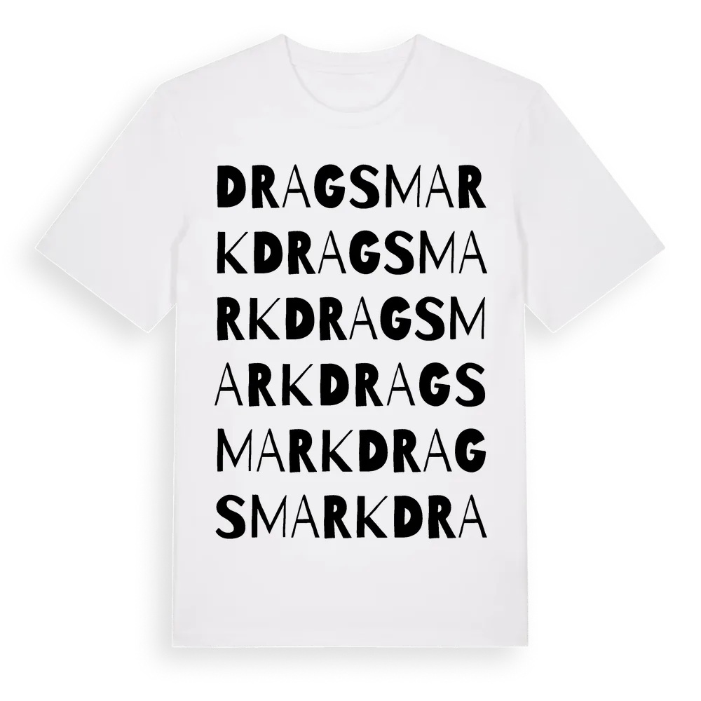 Dragsmark ordlek t-shirt är inspirerad av byn Dragsmark i Västra Götalands län, Sverige. Tröjan är designad för dig som har en speciell koppling till platsen – oavsett om du bor här, har rötterna här eller bara älskar Dragsmark.