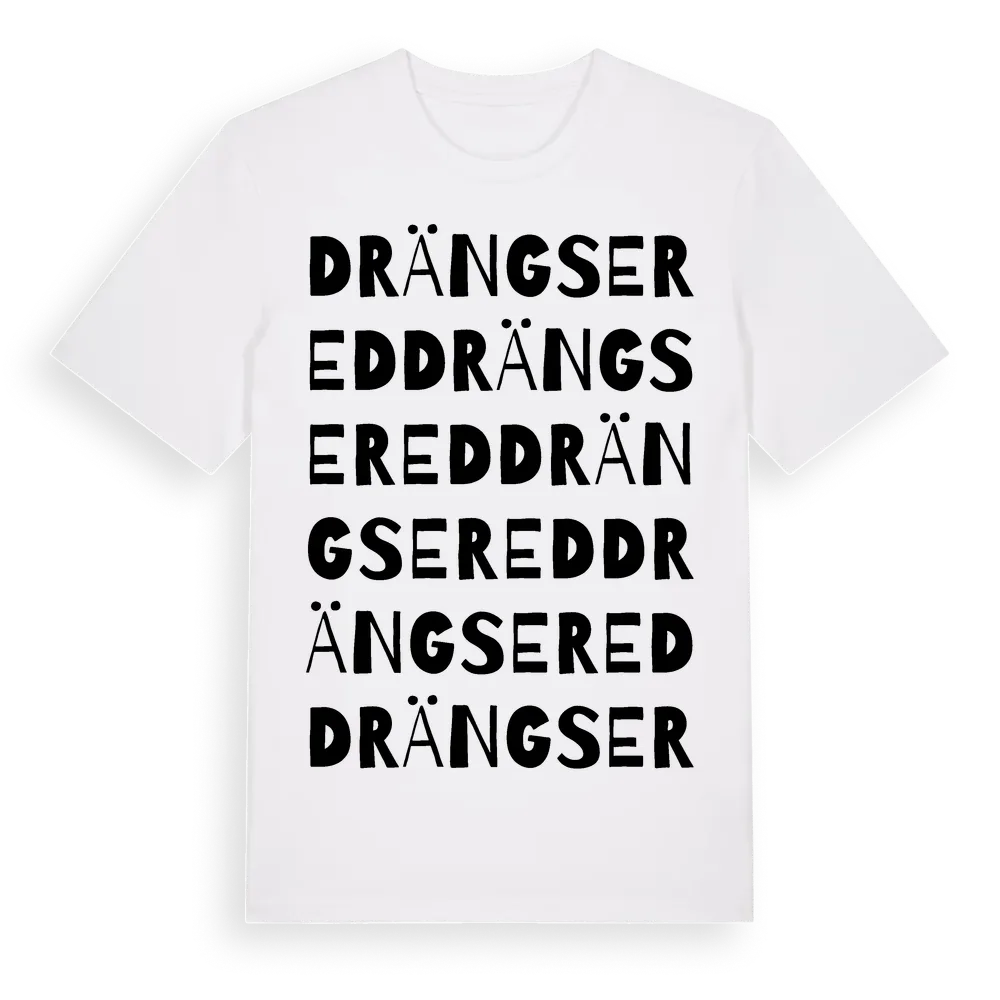 Drängsered ordlek t-shirt är inspirerad av byn Drängsered i Västra Götalands län, Sverige. Tröjan är designad för dig som har en speciell koppling till platsen – oavsett om du bor här, har rötterna här eller bara älskar Drängsered.