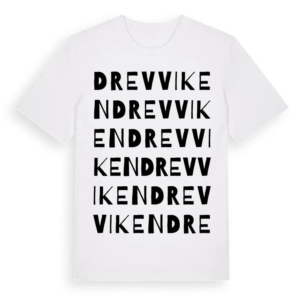 Drevviken ordlek t-shirt är inspirerad av Drevviken i Västra Götalands län, Sverige. Tröjan är designad för dig som har en speciell koppling till platsen – oavsett om du bor här, har rötterna här eller bara älskar Drevviken.