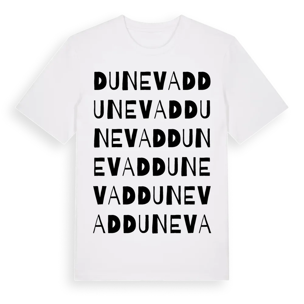 Dunevad ordlek t-shirt är inspirerad av Dunevad i Västra Götalands län, Sverige. Tröjan är designad för dig som har en speciell koppling till platsen – oavsett om du bor här, har rötterna här eller bara älskar Dunevad.