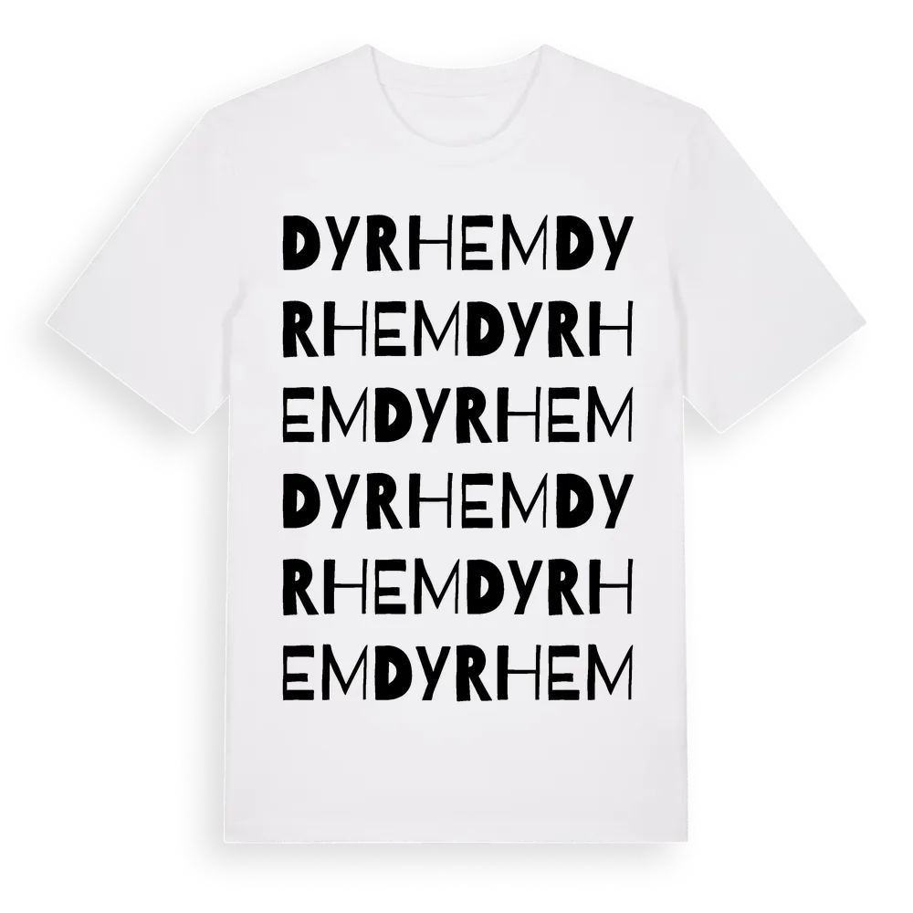 Dyrhem ordlek t-shirt är inspirerad av Dyrhem i Västra Götalands län, Sverige. Tröjan är designad för dig som har en speciell koppling till platsen – oavsett om du bor här, har rötterna här eller bara älskar Dyrhem.