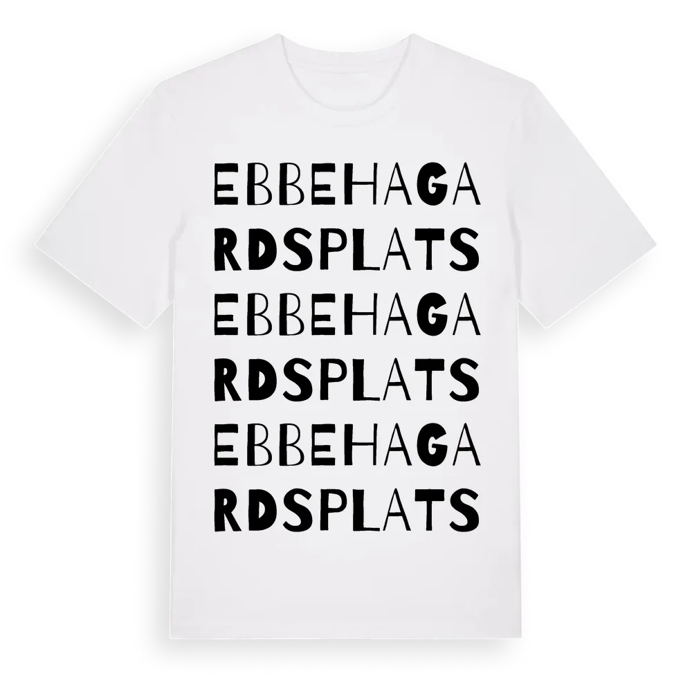 Ebbe Hagards Plats ordlek t-shirt är inspirerad av Ebbe Hagards Plats i Västra Götalands län, Sverige. Tröjan är designad för dig som har en speciell koppling till platsen – oavsett om du bor här, har rötterna här eller bara älskar Ebbe Hagards Plats.