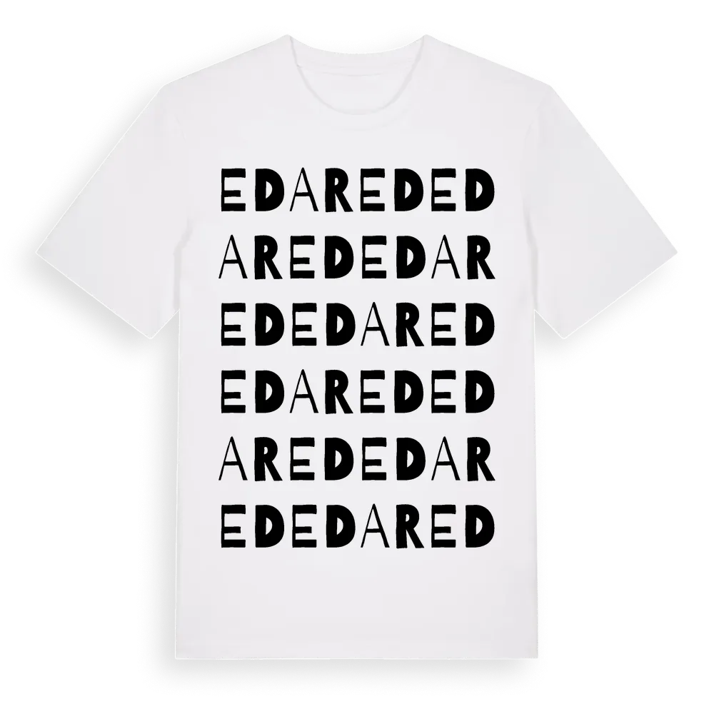 Edared ordlek t-shirt är inspirerad av byn Edared i Västra Götalands län, Sverige. Tröjan är designad för dig som har en speciell koppling till platsen – oavsett om du bor här, har rötterna här eller bara älskar Edared.